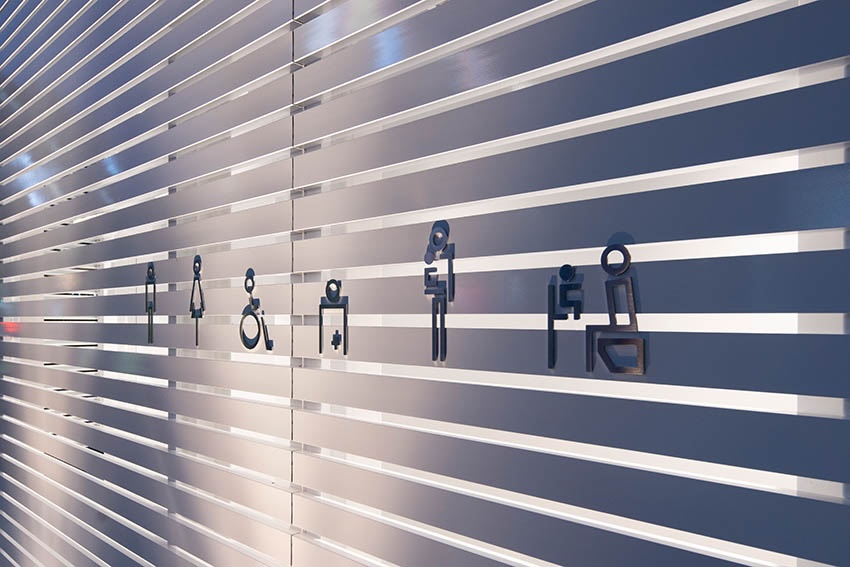 Pour Tokyo Toilet Project, le graphiste et directeur artistique Kashiwa Sato a développé un système de pictogrammes uniforme. Il indique quelles fonctions et quels éléments accessibles aux personnes à mobilité réduite sont disponibles. Ils permettent d’orienter de manière claire et intuitive les personnes présentant différents besoins. Photo : The Nippon Foundation / TOTO